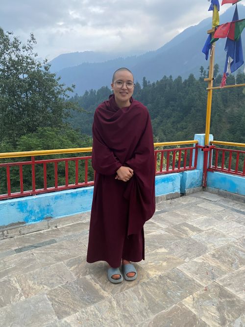 Klášter Pangmo se nachází na úpatí horských svahů, obklopený poli ječmene a výhledem na zasněžené vrcholky Himalájí. Je to místo klidu, kde ticho přerušuje jen zpěv ptáků a zvuk větrných praporů vlajících v horském větru. Založily ho před mnoha lety ženy, které chtěly vytvořit prostor pro vzdělávání mnišek, a dodnes si uchovává svou rodinnou atmosféru. Když procházím jeho dvorem, cítím, že patřím k dlouhé linii žen, které zasvětily svůj život modlitbě, studiu a službě druhým.