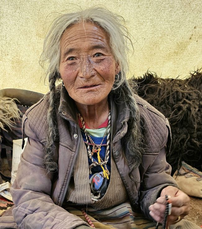 Můj muž zemřel před lety. Mám čtyři děti, ale každé žije jinde – i ony jsou nomádi. Jen jeden syn je poblíž a snaží se o mě postarat. Má malé stádo, asi dvacet koz. Není to mnoho, ale dělá, co může. Jsem na něm závislá – bez něj bych tu nepřežila.