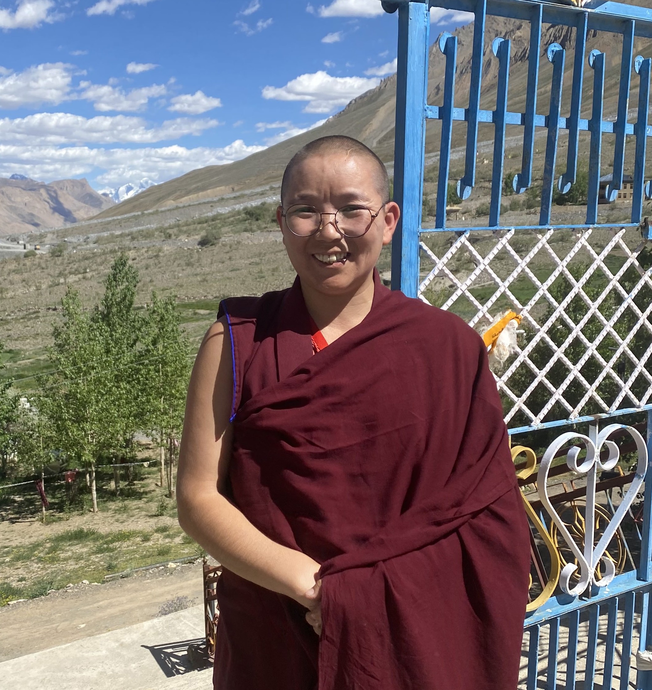 Původně mě do Institutu Sherab Choling nemohli přijmout kvůli nedostatku místa, ale na přímluvy mého otce mě nakonec přijali. Teď sdílím malou místnost s dalšími třemi mniškami. I přes skromné podmínky jsem zde velmi šťastná a vděčná za možnost studovat. Nyní jsem ve třídě Lorik, kde se kromě buddhistické filozofie učím také angličtinu a tibetštinu.
